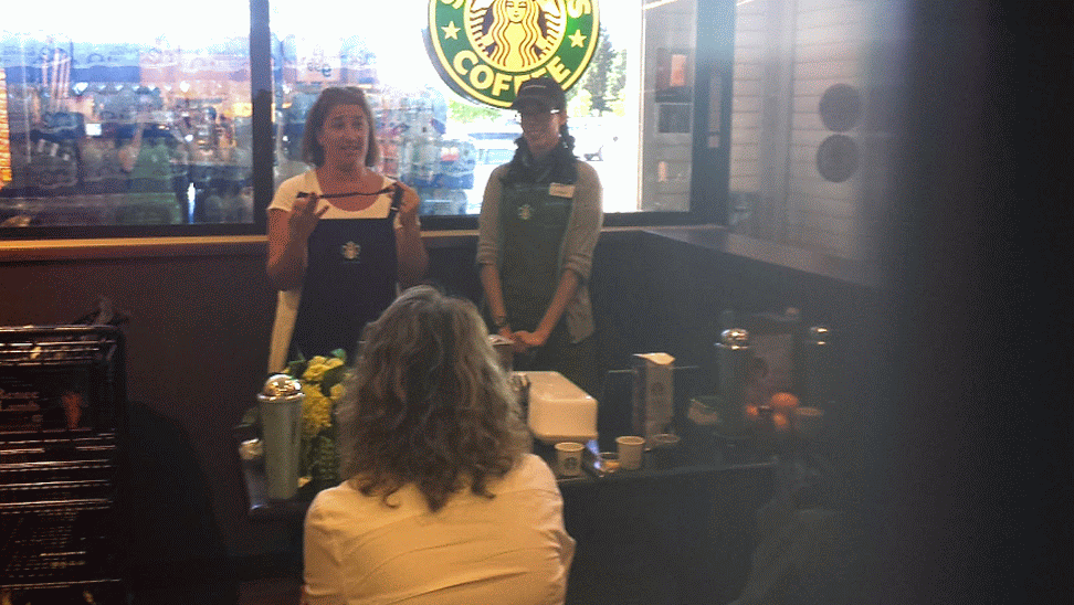 I just completed my Starbucks Coffee Master program. It is like a black belt in Starbucks coffee knowledge… It was very inspiring to finish. I am so excited and want to start a monthly coffee tasting at my little Blackhawk kiosk. The best part about being a Coffee Master is that I get to wear a black apron instead of the usual green. Whoot!