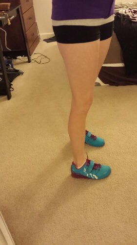 I just finished week 4 of strength training. Looking back just 4 weeks ago I have already inproved. I started squatting just the bar (45lbs) and needed help. Today for a warm up I used the bar with no problems. Pure amazing and I am so pumped for the next month. Again, Mr. Awesome Boyfriend is great at research. He found squat shoes to help with form. My shoes are called inov and come in an awesome blue/purple color. They have a 3/4in stiff heal for proper squat form. They were about $140 from an online store. There are better known brands but for the price and being a newbie these are a great 1st shoe.